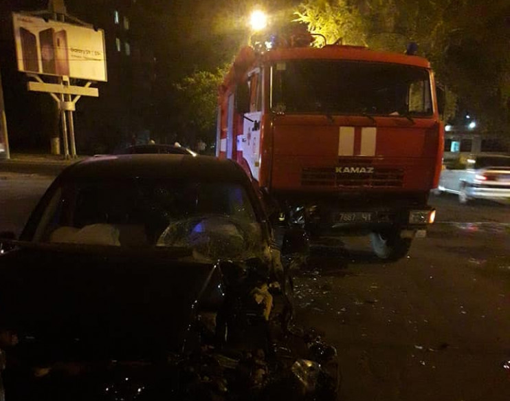 В Одессе пожарная машина столкнулась с электромобилем Nissan Leaf.
