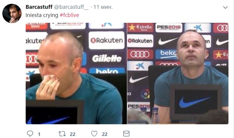 Прощаясь с клубом, Иньеста прослезился.