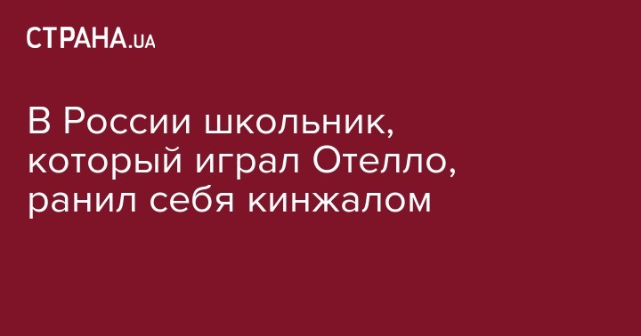 В России 16-летний школьник, который исполнял роль Отелло на "Шекспировских чтениях", ранил себя кинжалом. Состояние подростка оценивается как тяжелое, однако угрозы его жизни нет.