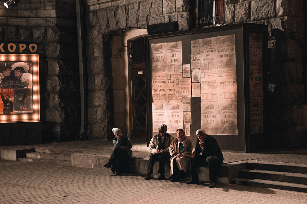 Как выяснилось, красные флаги и транспоранты оказались декорациями к фильму о Василии Стусе "Птах душі", съемки которого начались в Киеве.