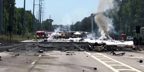 Отмечается, что самолет упал на пересечении обычно оживленных автомагистралей. В то же время подчеркивается, что в это время там не было ни одной машины.