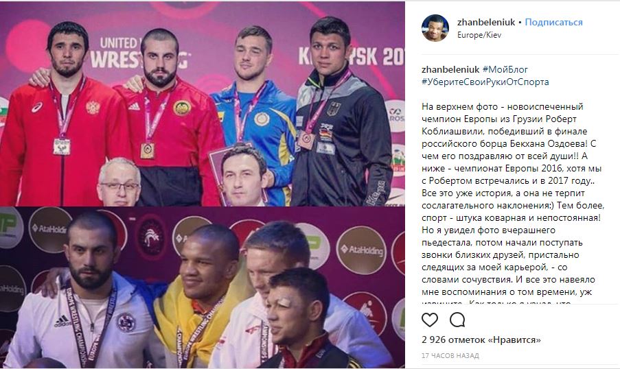 Серебряный призер Олимпийских игр-2016 украинский борец Жан Беленюк недоволен действиями украинских чиновников, создавших препятствия для участия украинских армейских клубов в чемпионате Европы по спортивной борьбе в РФ.