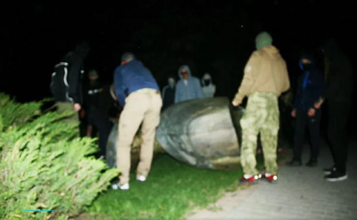 На фото радикалы позируют в балаклавах ночью с 5 на 6 мая, когда и был поврежден памятник.