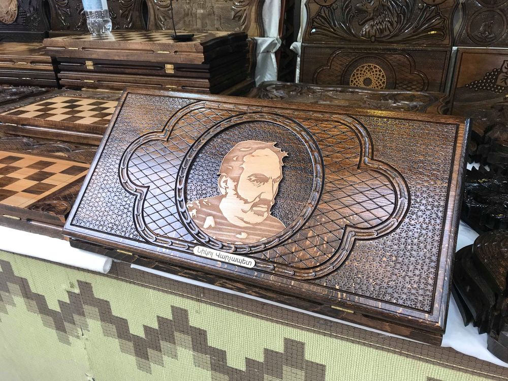 На этом же вернисаже "Страна" нашла – не поверите – деревянные нарды, на которых вырезан портрет Пашиняна. Мастер Геворг сопереживает Николу. Первый экземпляр подарил самому Пашиняну. "Я с ним лично не знаком, но передал нарды через общих друзей. Они говорили, что Никол очень расчувствовался и был рад, – говорит Геворг. – Потом люди заинтересовались и я сделал еще, уже на продажу".