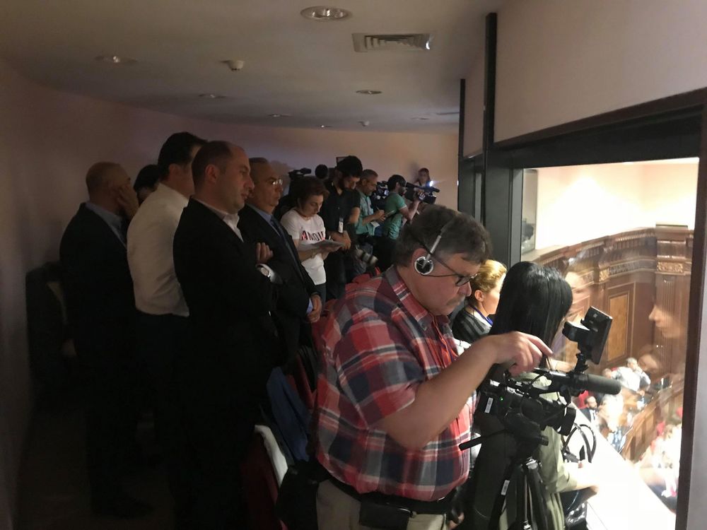 11:06  За трансляцией заседания парламента следят с улицы, которая заполнена сторонниками Пашиняна. Наружу выведены экраны и динамики.