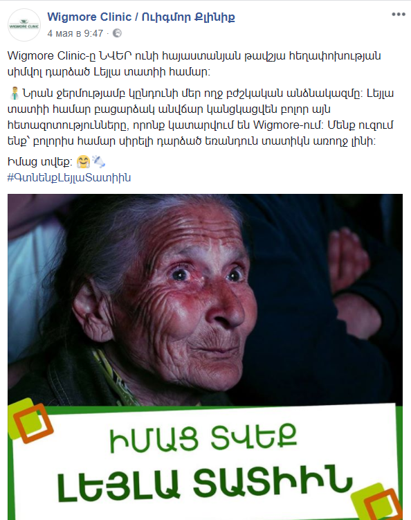 11:23  Объявление от местной клиники, которая обещает бесплатно подлечить бабушку Лейлу - "бабу Параску" армянского майдана.