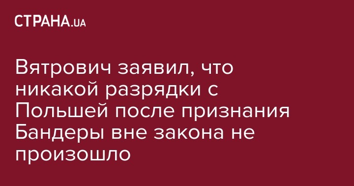 Вятрович заявил, что никакой разрядки с Польшей после признания Бандеры вне закона не произошло