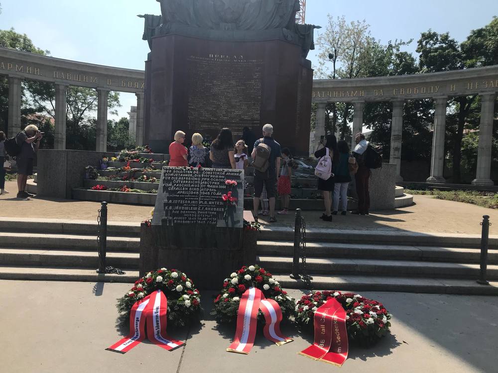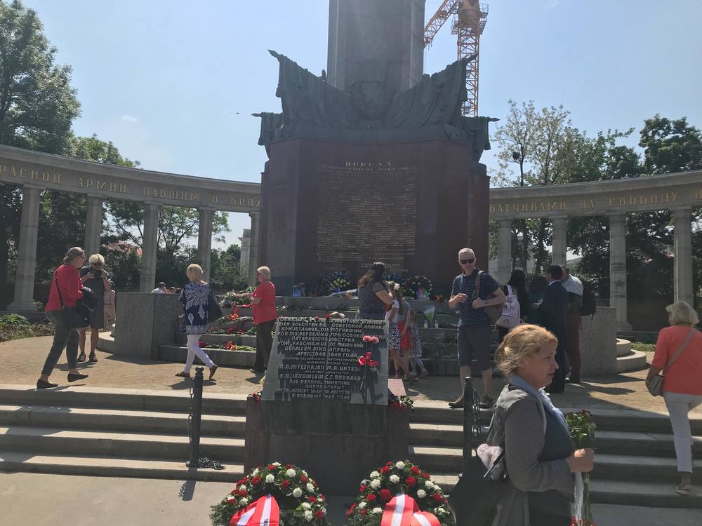 12:35  А вот что происходит в Вене около памятника советским воинам-освободителям. Сюда в этот день приехали жители Киева, Днепра и других городов Украины. Фото "Страны".