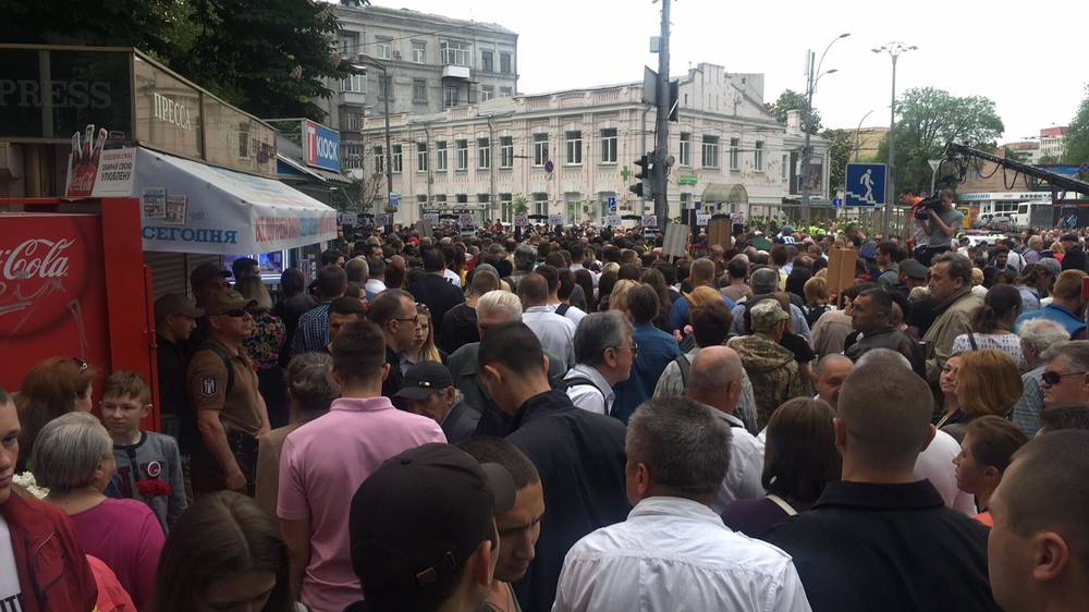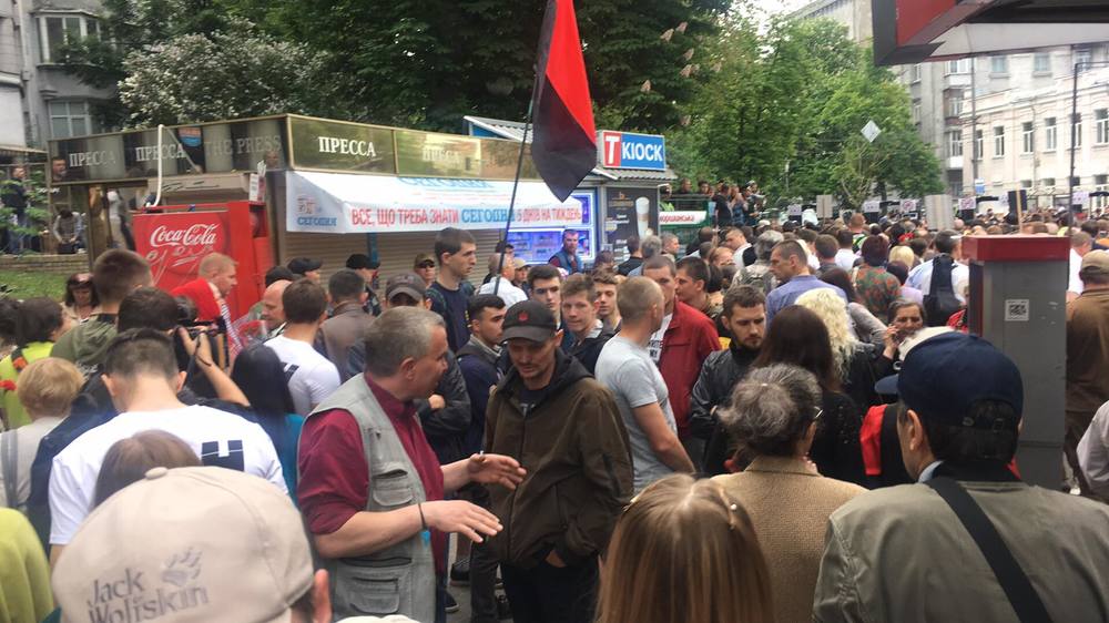 "Сегодня я как организатор (акции "Бессмертный полк". – Прим. ред.), в 9:08 по специальному проходу с правой стороны "Арсенальной" прошла проверку, как и все, потому что у меня был портрет моего дедушки и портрет Олеся Бузины с цветами. Полтора часа мы вместе с ветеранскими организациями формировали колонну. Когда я подошла к оркестру, чтобы отвести его в сторону, собралась группа, в основном праворадикалов. Они начали на меня кричать из-за футболки и портрета Бузины", – поделилась женщина.