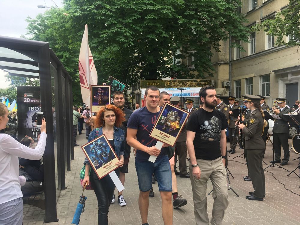 10:47  На "Арсенальной" появились люди Корчинского, которые несут портреты  монстров из компьютерных игр. Много им пройти не дали – полиция заблокировала активистов, которых было около 20 человек. Дальше они не идут.
