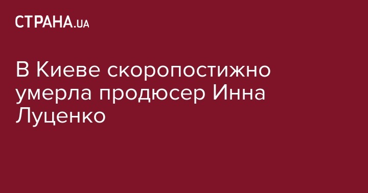 В Киеве от тяжелой формы рака скончалась украинский продюсер Инна Луценко, которая сотрудничала с такими украинскими каналами, как 1+1, Интер и Первый Национальный. Об этом на своей странице в социальной сети Facebook написала ее коллега Мария Попова.