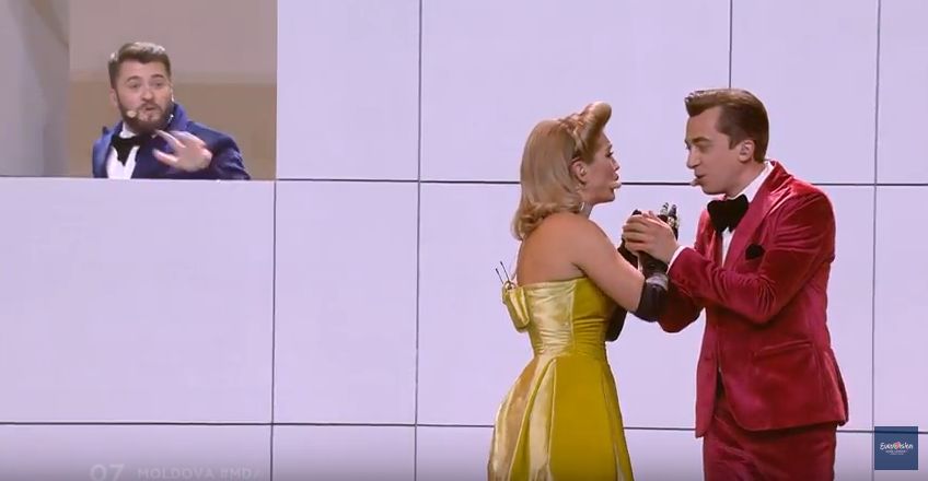 22.34 Молдавские участники DoReDos из своей песни "My Lucky Day" устроили мини-представление, используя в качестве декорации "стену" с открыващимися дверями и окошками.