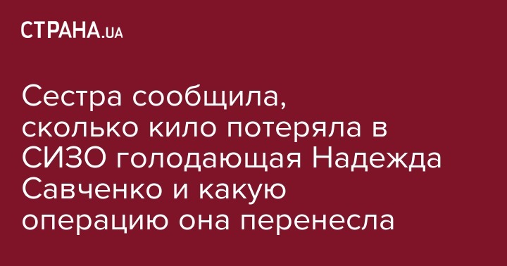 Народный депутат Украины Надежда Савченко, которая находится в заключении в СИЗО, там голодает и потеряла 17 кг. Также она перенесла операцию на зубе.