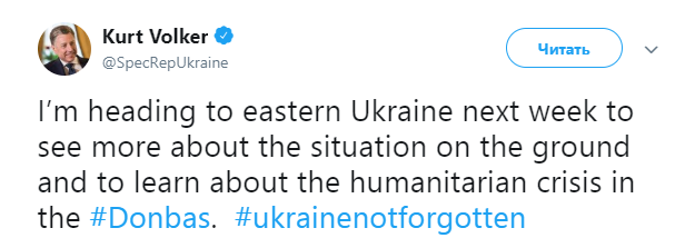 Спецпредставитель США Госдепартамента США по вопросам Украины Курт Волкер посетит Донбасс на следующей неделе.
