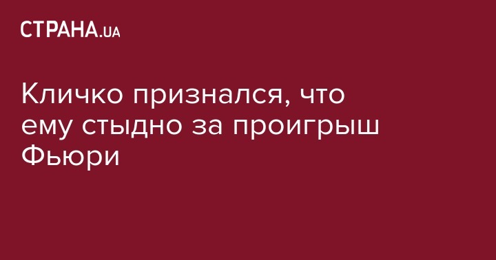 "Мне стыдно за то, что я допустил ошибку и проиграл бой Тайсону Фьюри, потому что он не тот чемпион мира в супертяжелом весе, на которого мне бы хотелось смотреть и испытывать гордость. Его высказывания огорчают", - сказал Кличко.