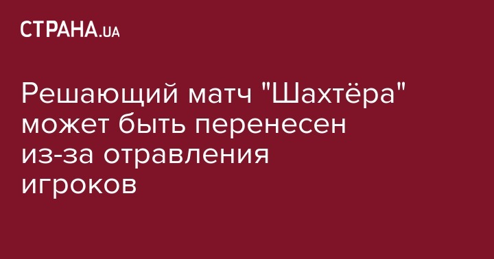 Матч 31-го тура чемпионата Украины по футболу, в котором донецкий "Шахтёр" должен был 13 мая принимать "Верес" на поле харьковского стадиона, могут перенести из-за отравления 9 игроков ровенского клуба.