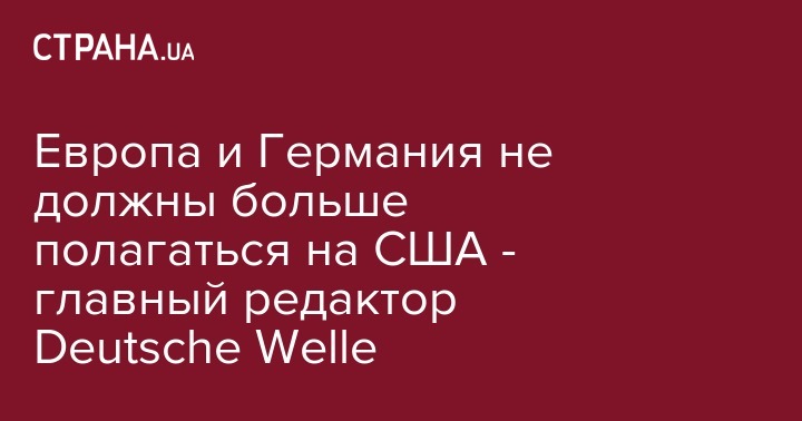 Европа и Германия не должны больше полагаться на США - главный редактор Deutsche Welle