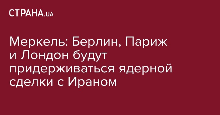 Меркель: Берлин, Париж и Лондон будут придерживаться ядерной сделки с Ираном