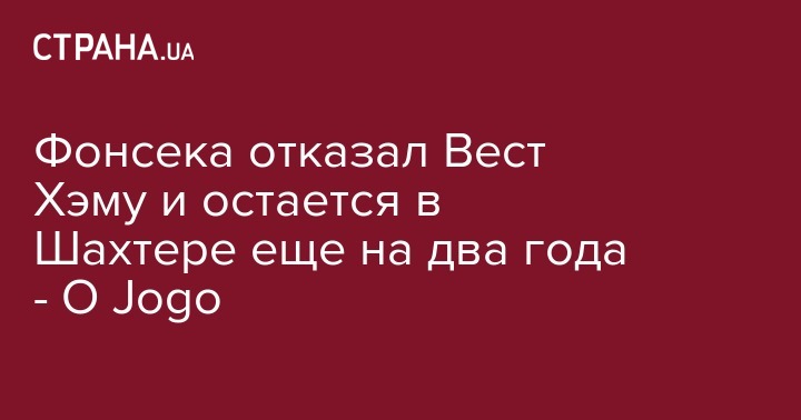 Фонсека отказал Вест Хэму и остается в Шахтере еще на два года - O Jogo