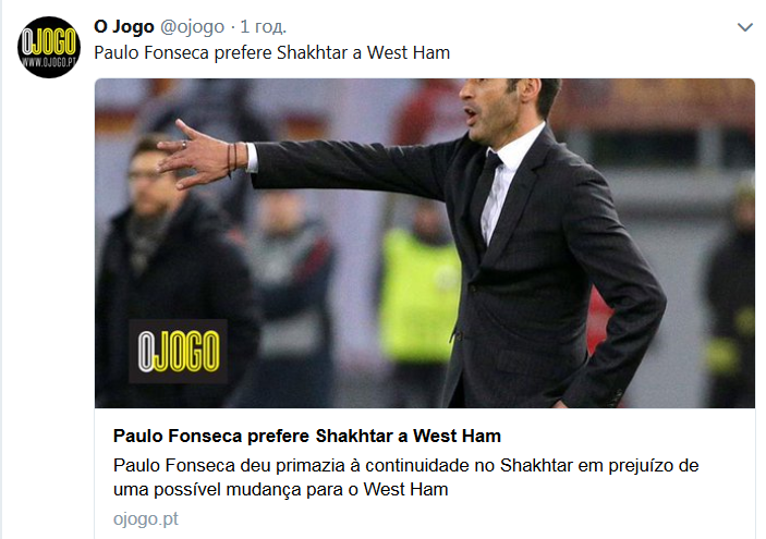 Солидная португальская газета O Jogo сообщила о том, что наставник "горняков" отклонил предложение английского Вест Хэма, на переговоры с которым он летал в понедельник 13 мая, и продлит соглашение с дончанами еще на два года.