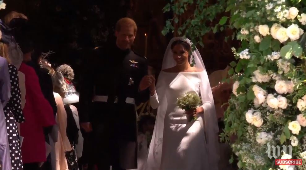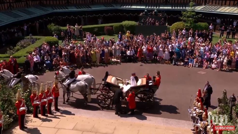 The Duke and Duchess of Sussex depart the Chapel for a carriage procession through the Castle and Windsor Town #RoyalWedding pic.twitter.com/pxPht7OXfP