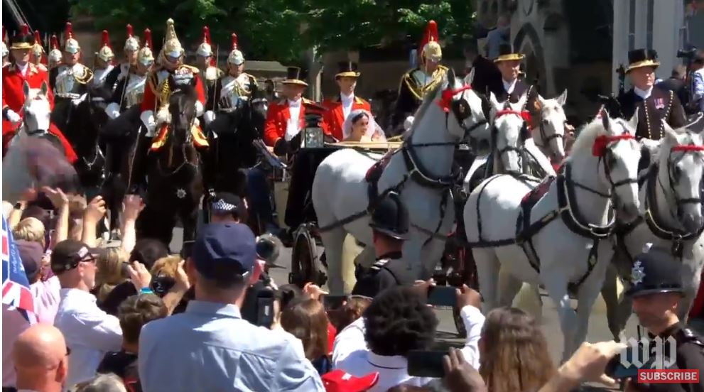 Кортеж невесты подъехал к часовне! Люди приветствуют Меган Маркл бурными аплодисментами и криками.