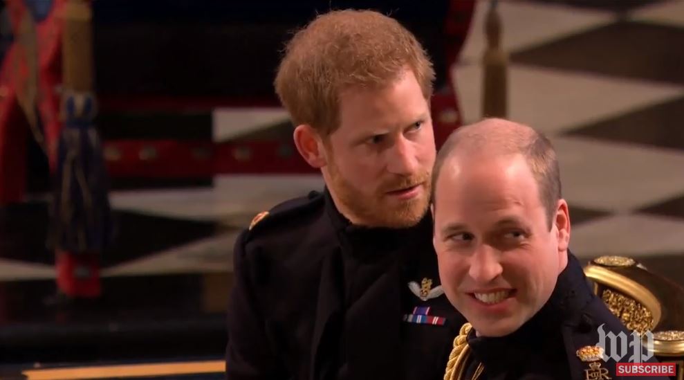 Принц Гарри с братом Уильямом в это время ждут появления Меган в часовне. И, видимо, немного нервничают. Играет орган.