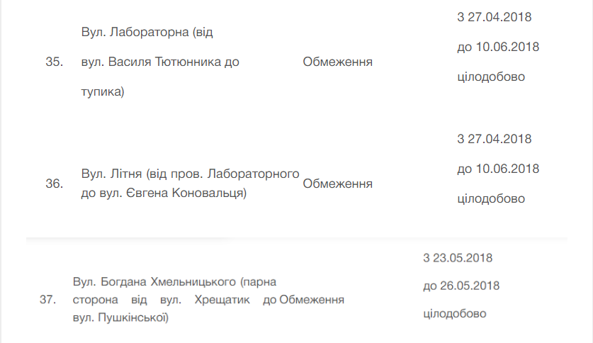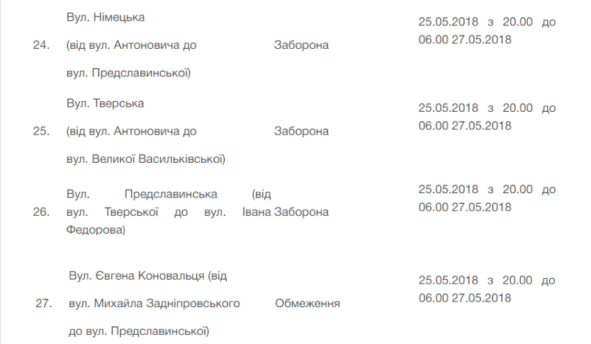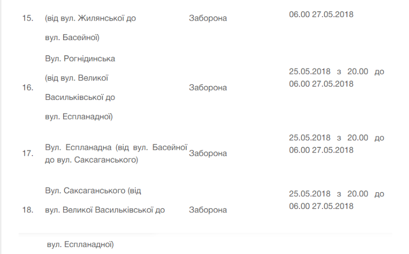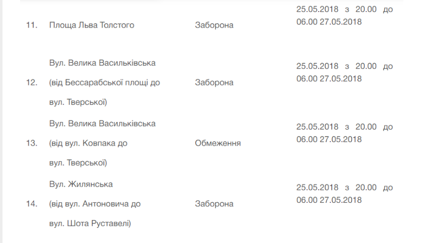 Более детальную информацию об ограничениях движения можно найти ЗДЕСЬ.