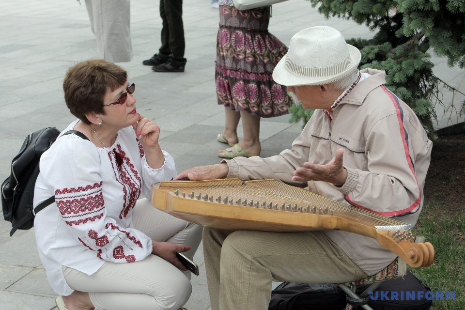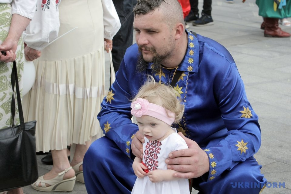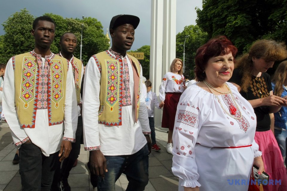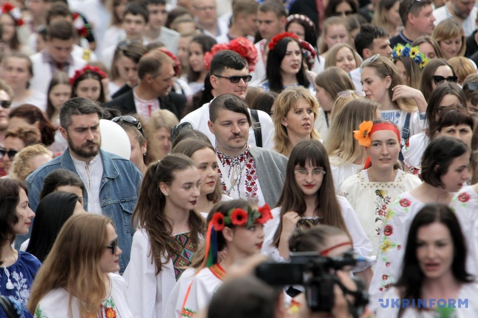 Затем колонна в вышиванках направилась по центру города на площадь Свободы, где также состоится концерт.