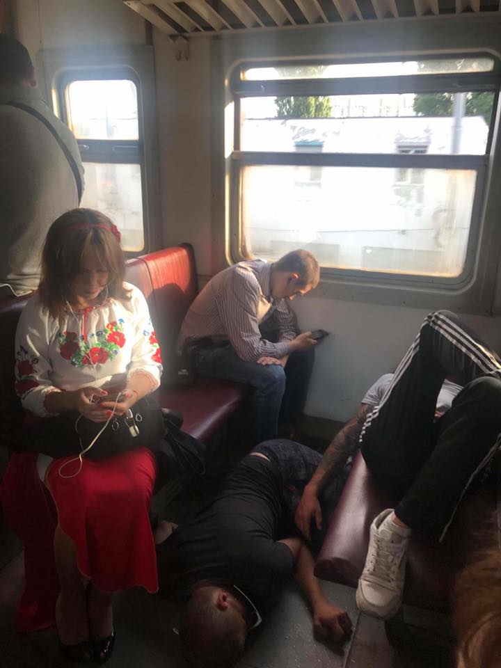 В соцсетях бурную реакцию вызвала фотография, сделанная по данным пользователей, в электричке Киев - Ирпень.