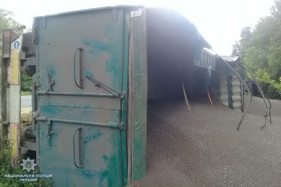 В Луганской области на дороге перевернулся грузовик с более 20 тоннами гречки.