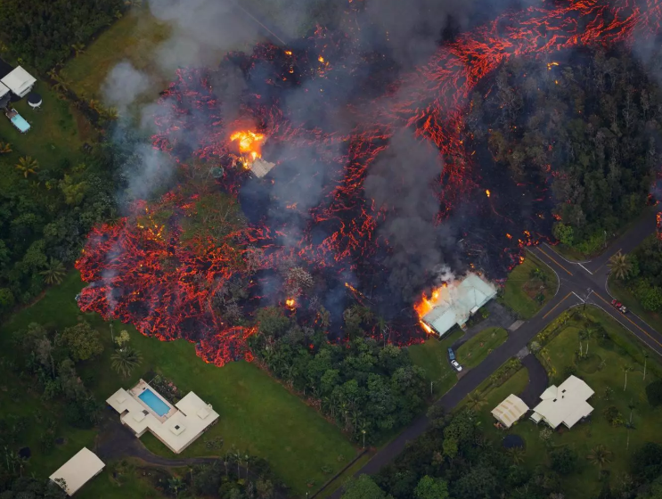Лава уже уничтожила по меньшей мере 26 домов и 10 других сооружений. Власти Гавайев пытаются очистить около мили затвердевшей лавы от дороги, заблокированной извержением в 2014 году, чтобы открыть альтернативный путь эвакуации для прибрежных жителей.