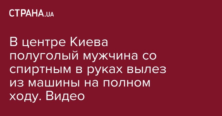 В центре Киева полуголый мужчина со спиртным в руках вылез из машины на полном ходу. Видео