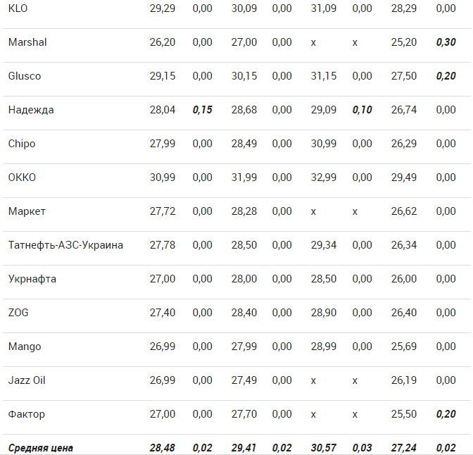 В сетях "Укргаздобыча", UPG, SOCAR, KLO, Marshal, "Надежда", "Фактор", Glusco и "БРСМ-Нафта" цены на топливо выросли на 3–20 коп./л.