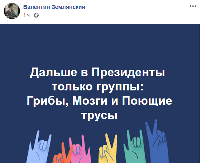 "Дальше в Президенты только группы: Грибы, Мозги и Поющие трусы", - написал Землянский в Facebook.