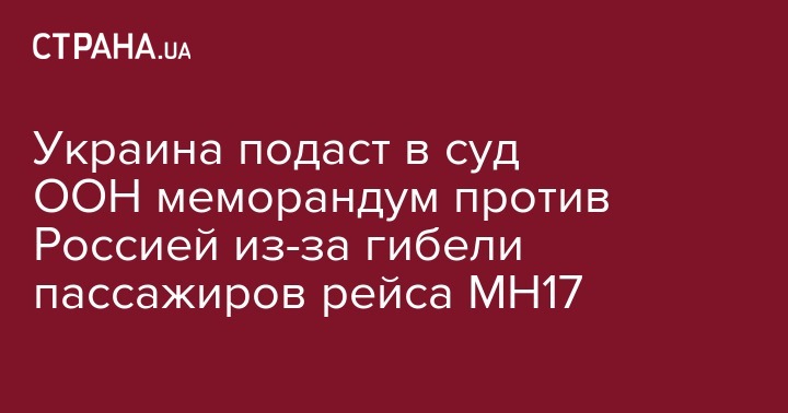 Украинская сторона 12 июня подаст в Международный суд ООН меморандум относительно нарушении Российской Федерацией Монреальской конвенции (о борьбе с незаконными актами против безопасности гражданской авиации) и Международной конвенции о борьбе с финансированием терроризма из-за дела малазийского самолета MH-17, сбитого на Донбассе, сообщила заместитель министра иностранных дел Украины по вопросам европейской интеграции Елена Зеркаль.