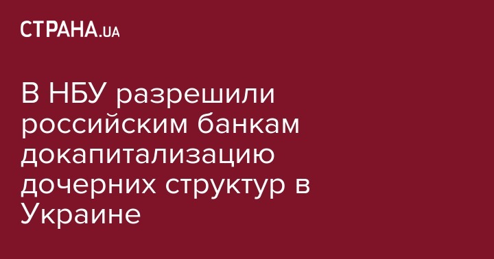 Национальный банк Украины разрешил работающим в Украине под санкциями российским государственным банкам провести докапитализацию своих дочерних структур. К ним относятся "Сбербанк", "Проминвестбанк", "ВТБ Банк" и "БМ Банк".