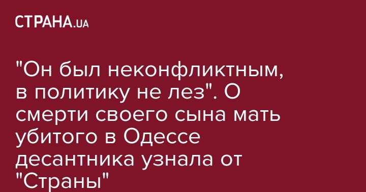 "Он был неконфликтным, в политику не лез". О смерти своего сына мать убитого в Одессе десантника узнала от "Страны"