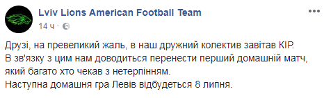 Матч Top Лиги УЛАФ по американскому футболу между командами "Львы" (Львов) и "Викинги" (Николаев) перенесен со 2 на 6 июня из-за эпидемии кори у львовян.