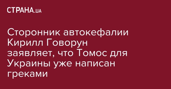 Сторонник автокефалии Кирилл Говорун заявляет, что Томос для Украины уже написан греками