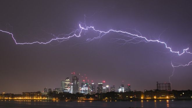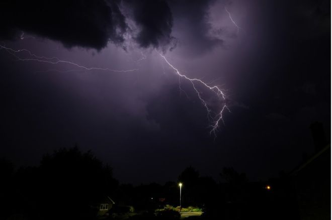 Сообщается, что вспышки молний поразили небо Британии не меньше 15 000 раз.