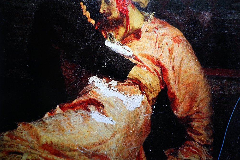 В пятницу, 25 мая, посетитель Третьяковской галереи металлическим столбиком ограждения несколько раз ударил по известной картине Ильи Репина "Иван Грозный и сын его Иван", оставив серьезные повреждения. Испорченный экспонат изъяли.