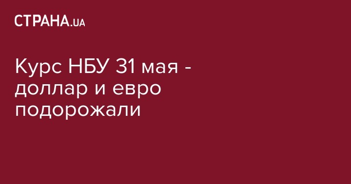 В четверг, 31 мая, Нацбанк установил официальный курс гривны по отношению к иностранным валютам. По сравнению с предыдущим рабочим днем доллар и евро подорожали.