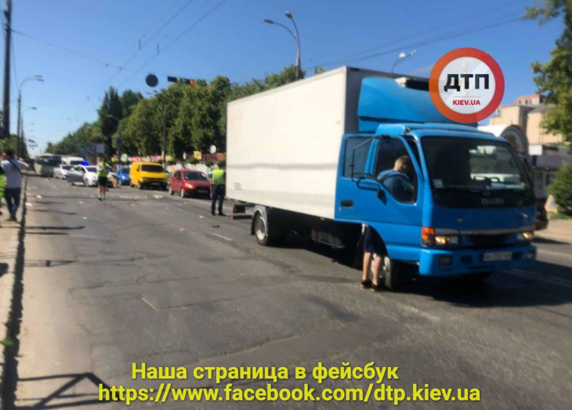В пятницу, 1 июня, на улице Щербаковского в Киеве грузовик сбил двух пешеходов.