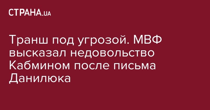 Транш под угрозой. МВФ высказал недовольство Кабмином после письма Данилюка