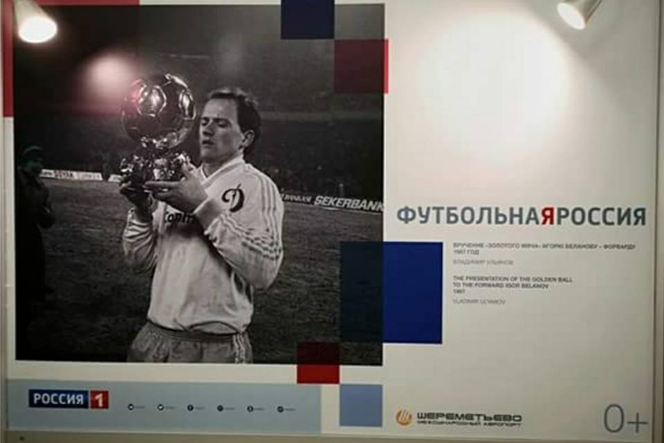 В московском аэропорту Шереметьево разместили плакаты с экс-игроками киевского Динамо Евгением Рудаковым (1960-е, 70-е) и Игорем Белановым (середина 80-х) - с надписью "Футбольная Россия".