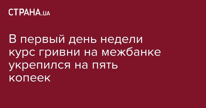 Ранее "Страна" сообщала, что перед выходными курс гривни укрепился на 6 копеек.