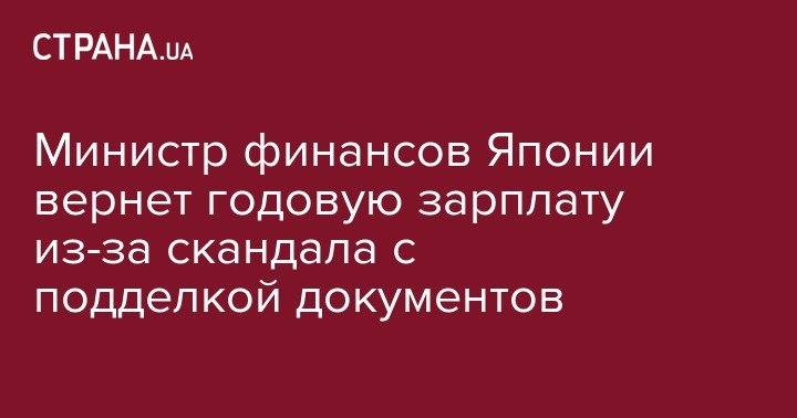 Вице-премьер, министр финансов Японии Таро Асо вернет годовую зарплату в знак извинения за подделку в его ведомстве документов.