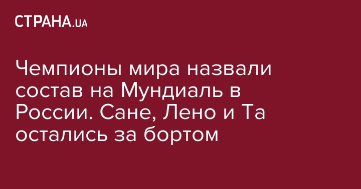 А вот в окончательную заявку не вошли вратарь Бернд Лено ("Байер"), защитник Джонатан Та ("Байер"), полузащитник Нильс Петерсен ("Фрайбург") и нападающий Лерой Сане ("Манчестер Сити", Англия). Сане в прошедшем сезоне стал чемпионом Англии, поделив первое место по количеству результативных передач (15) со своим партнером по команде бельгийцем Кевином де Брюйне. Также на счету 22-летнего игрока 10 голов в чемпионате. В составе сборной Германии он провел 12 игр и отметился одним голевым пасом, не забив ни одного гола.