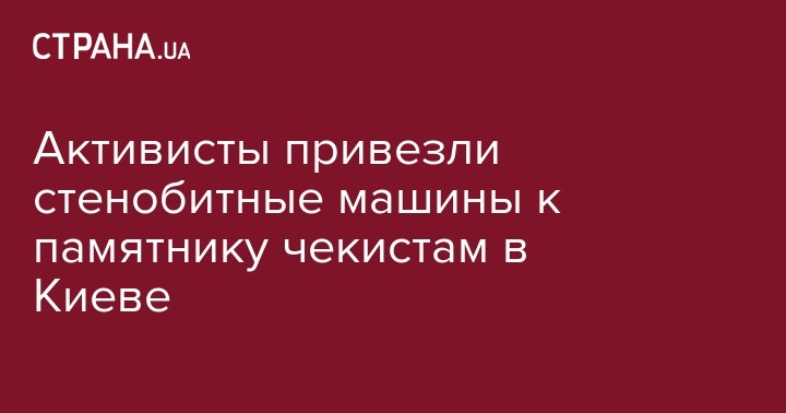 Активисты привезли стенобитные машины к памятнику чекистам в Киеве